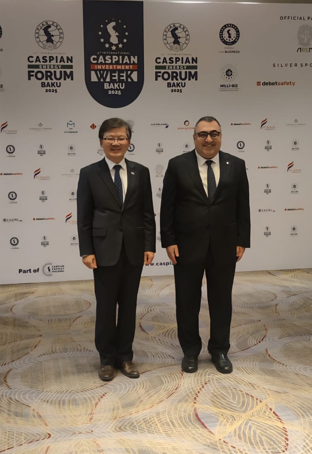 On October 29(Wednesday), Ambassador Kang Gym-gu attended the Caspian Energy Forum organized by the Caspian Energy Club in Baku. Participants included representatives of major regional energy companies, Azerbaijani government officials, and renewable energy experts, who discussed topics such as the use of the Middle Corridor as an energy transportation route and the expansion of green energy utilization.