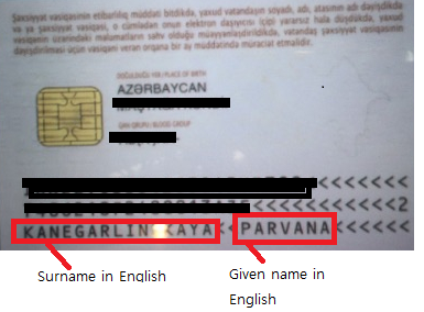 - your English name is written in the front side below of the old ID type or back side below of the new ID type.