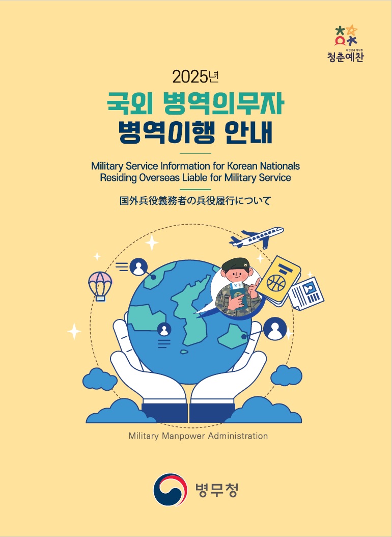 병무청에서 국외체재 병역의무자들이 정확한 병역이행 정보를 얻을 수 있도록 『︎국외 병역의무자 병역이행 안내』︎ 책자를 배포하였습니다. 자세한 사항은 아래 홈페이지 및 첨부 파일을 확인해 주시기 바랍니다.