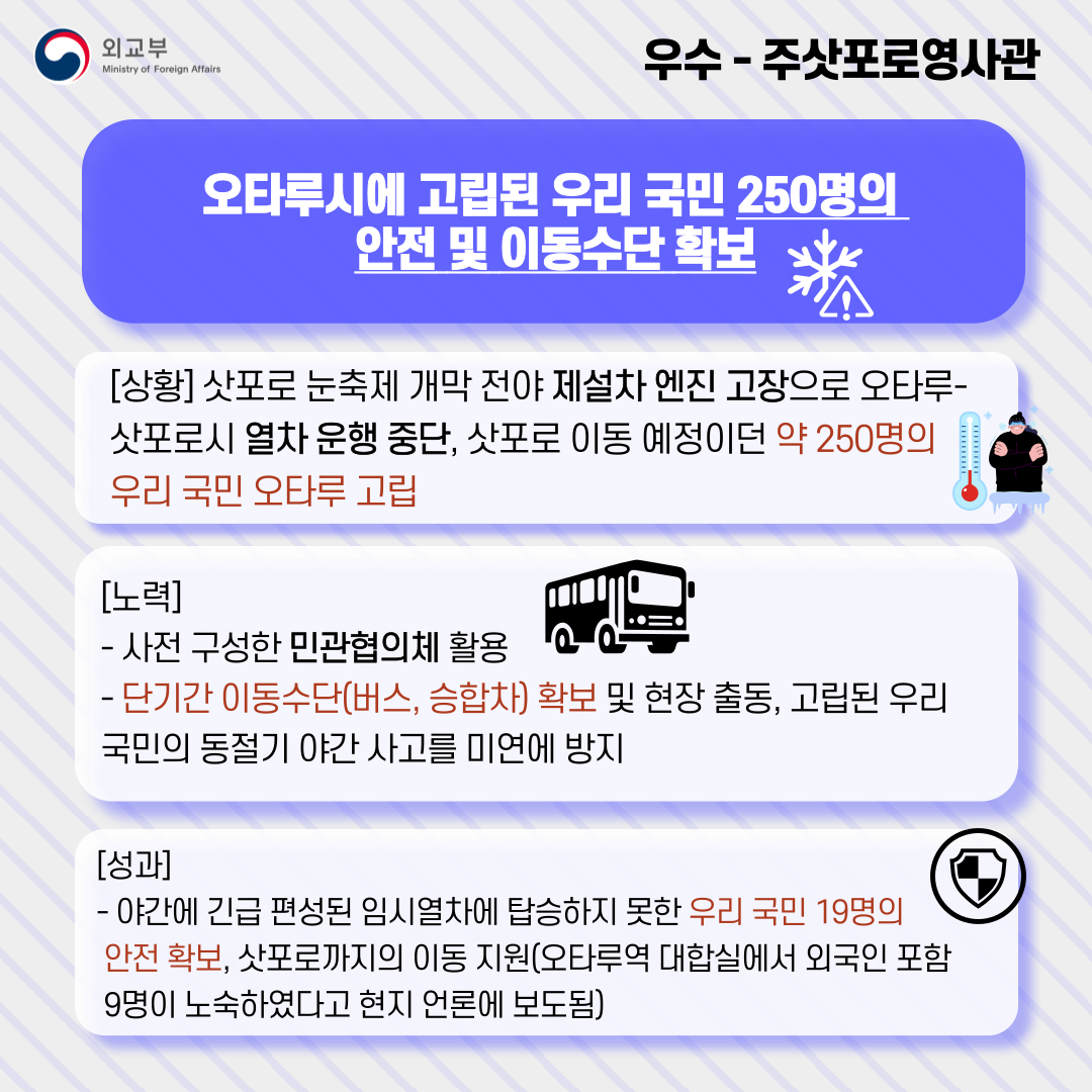 2024년도 제1차 외교부 적극행정 우수사례 공모전을 통해 선발된 우수사례 2건을 소개합니다.